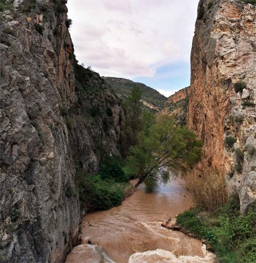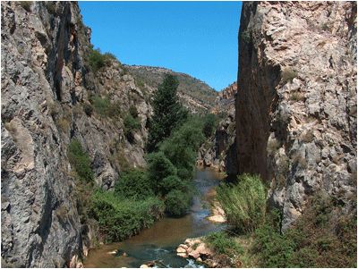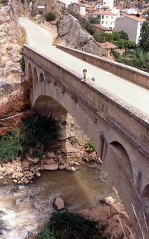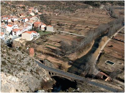 del río sobre el que cruza el puente que da entrada